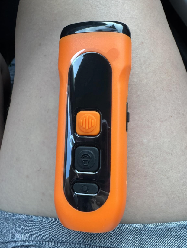 Da, exact pentru asta e făcut! Dacă te latră sau se apropie prea tare, apeși butonul și câinii se opresc și se calmează imediat. Mulți oameni îl iau cu ei când merg pe drum, pentru siguranță.